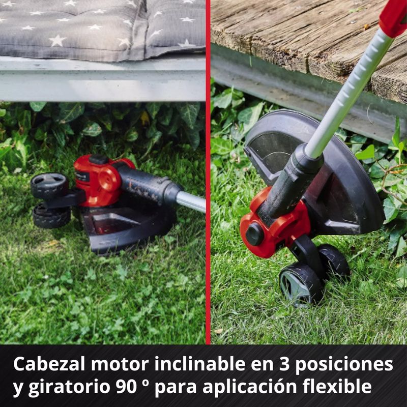 • Cabezal motor giratorio 90°: Para superficies / bordes de césped verticales