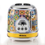 Tostadora eléctrica perteneciente a la línea «Vintage Capri» de la marca Ariete, de estilo retro-italiano con acabados metálicos y colores pastel que aportan diseño a la cocina.