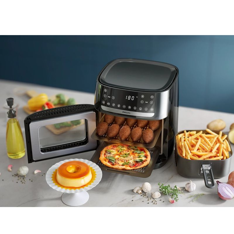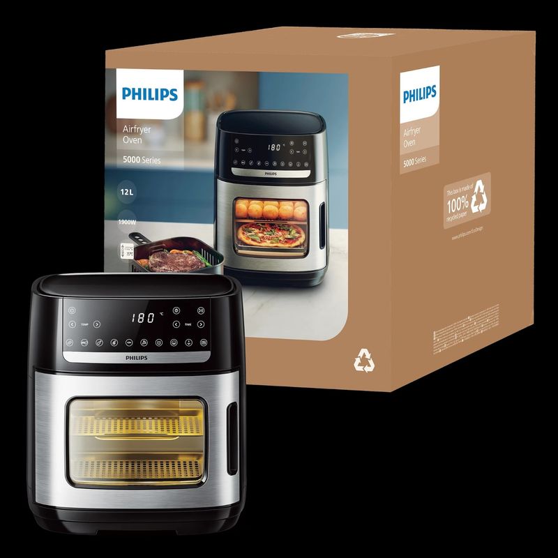 • Disfrute de la cocina con el horno Philips Airfryer Serie 5000. Cocine para toda la familia con nuestra capacidad de 12 l, calentamiento rápido y accesorios que pueden optimizar las recetas para Airfryer y horno.