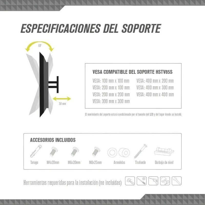 TecnologíaProyectores y PantallasSoportesSoporte Basculante Para TV LED de 26" a 65" Tagwood HSTV85S