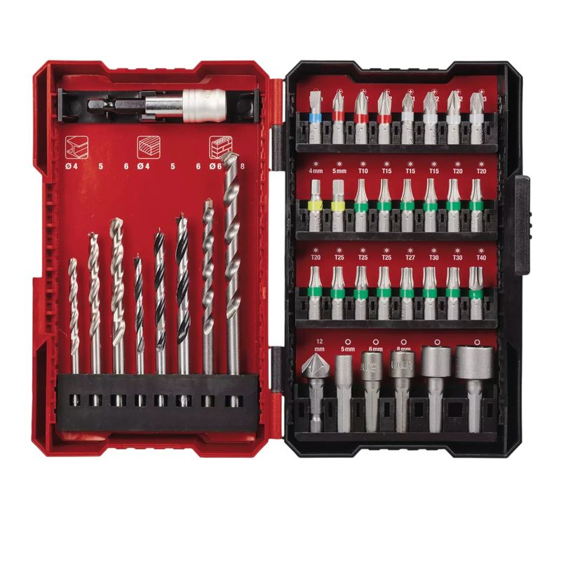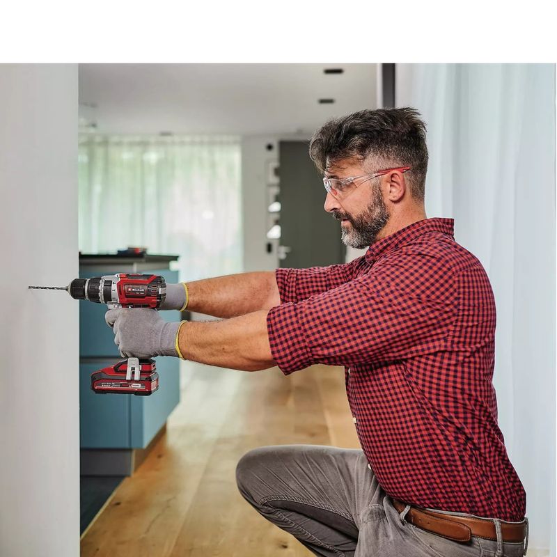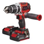 • El taladro percutor atornillador inalámbrico TP-CD 18/60 Li-i BL +39 (2x2,0Ah) de Einhell es un aparato polivalente que destaca en tres importantes disciplinas dentro de los trabajos del hogar y taller: Un práctico dispositivo que combina a la vez las funciones de atornillar, taladrar y martillear con percusión. Un motor sin escobillas garantiza más potencia y un tiempo de funcionamiento más prolongado que un motor de escobillas de carbono convencional. La función de percusión conmutable permite perforar a altas velocidades también en materiales de mayor dureza, como ladrillo - para perforar en madera es suficiente la función simple de perforación. Mediante el ajuste de par y el engranaje de 2 marchas para potente atornillado y perforación rápida, el taladro percutor también proporciona menores velocidades para el atornillado en materiales más blando en caso de necesidad. El diseño ergonómico con agarre suave aporta una manipulación agradable también en proyectos exigentes, el agarre adicional da lugar a un trabajo que cuida las articulaciones. El taladro percutor dispone de un portabrocas de metal de gran calidad de 13mm. En la entrega se incluye un set de puntas y brocas de 39 piezas para el inicio inmediato del proyecto. La luz LED integrada confiere la visión completa al trabajar en zonas oscuras. Como miembro potente de la serie Power X-Change puede accionarse el taladro percutor con cada batería de la serie del sistema - a la inversa también pueden combinarse todas las baterías con todos los equipos del sistema. El envío se realiza inclusive 2 baterías PXC 2,0 Ah y equipo de carga rápida en el práctico maletín universal E-Box Basic.